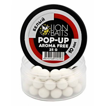 Lion Baits Бойлы плавающие Pop-Up "Aroma Free" (без аромы) белый 10 мм