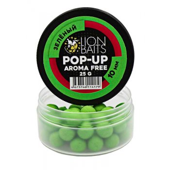 Lion Baits Бойлы плавающие Pop-Up "Aroma Free" (без аромы) зеленый 10 мм