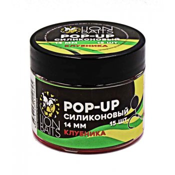 Lion Baits Бойлы плавающие Pop-Up Силиконовый "Клубника" 14мм (15шт)
