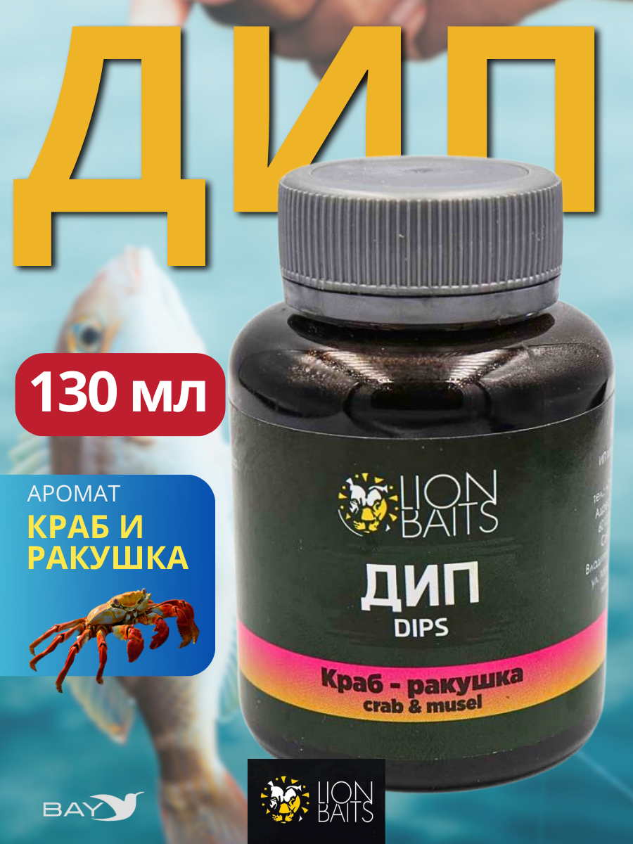 Lion Baits Impact Boilie Dips краб и ракушка (Crab & Mussel) - 130 мл