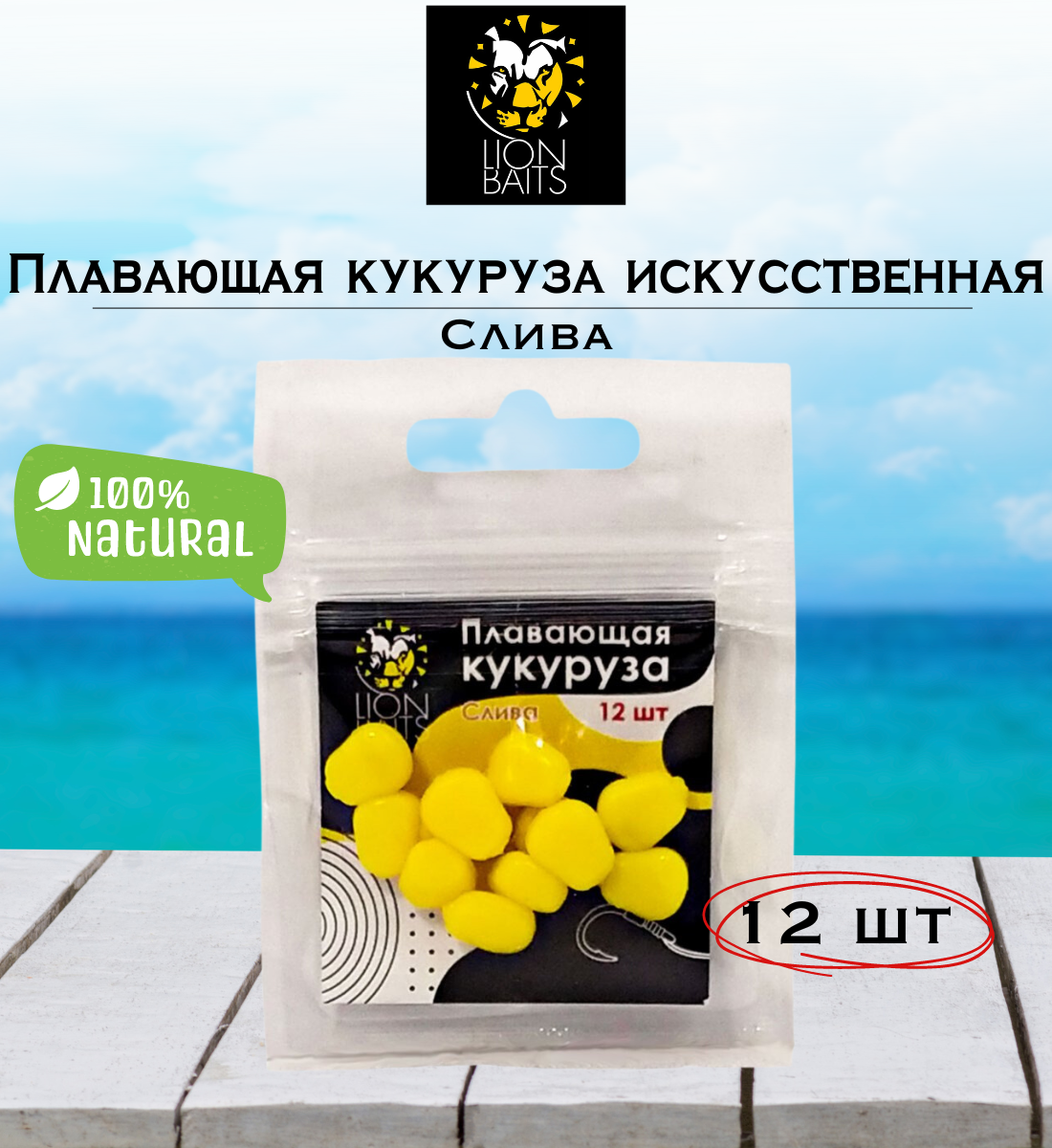 Lion Baits Кукуруза искусственная плавающая ароматизированная "Слива" 12шт