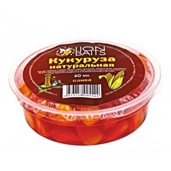Консервированные зерна сладкой кукурузы, используются в качестве одиночной насадки, так и в комбинировании с другими видами насадок растительного и животного происхождения. Сверху пластиковой тары надежно запаяна пленка, что дает возможность быстро вскрыть содержимое и использовать в своей рыболовной сессии.