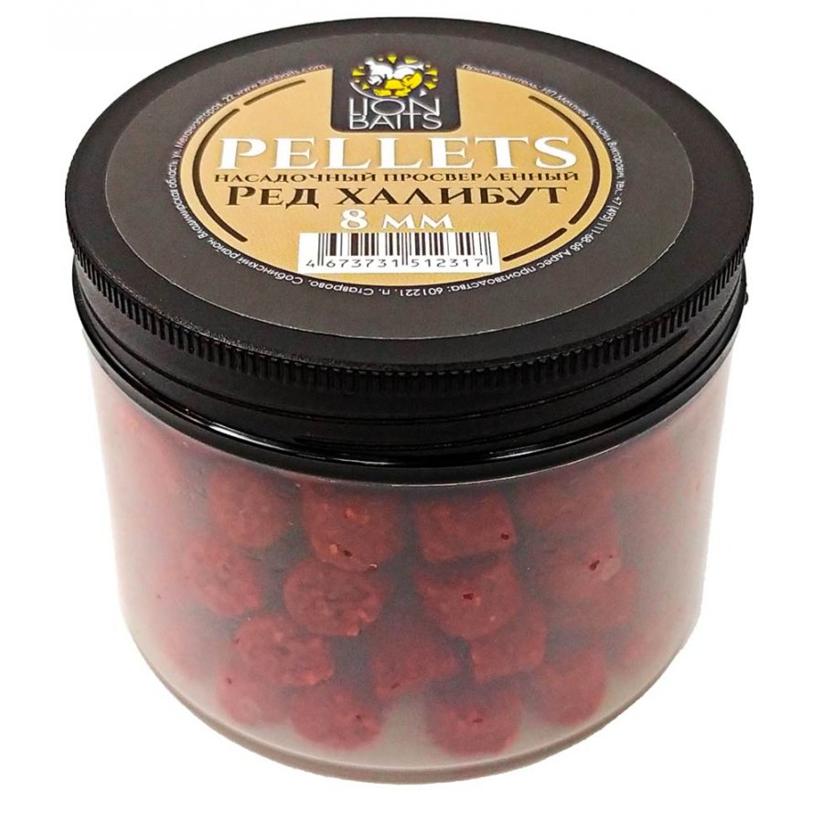 Lion baits Пеллетс насадочный просверленный "Ред халибут" 8мм 100гр