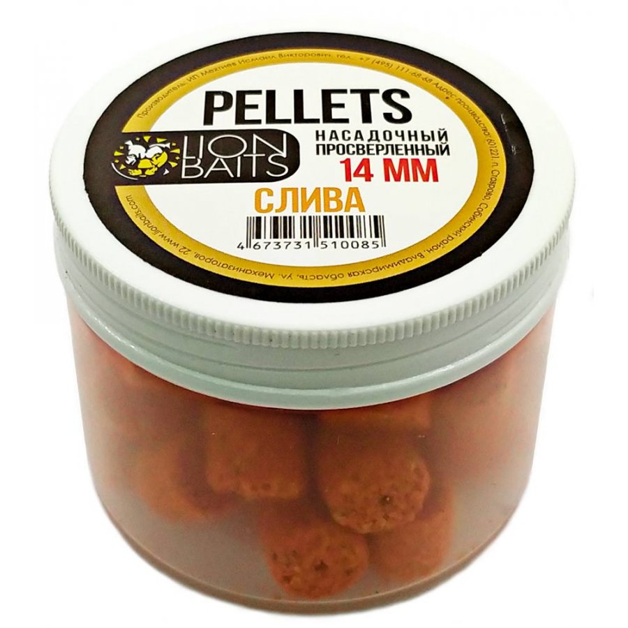 Lion Baits Пеллетс насадочный просверленный Слива 14 мм - 100 г