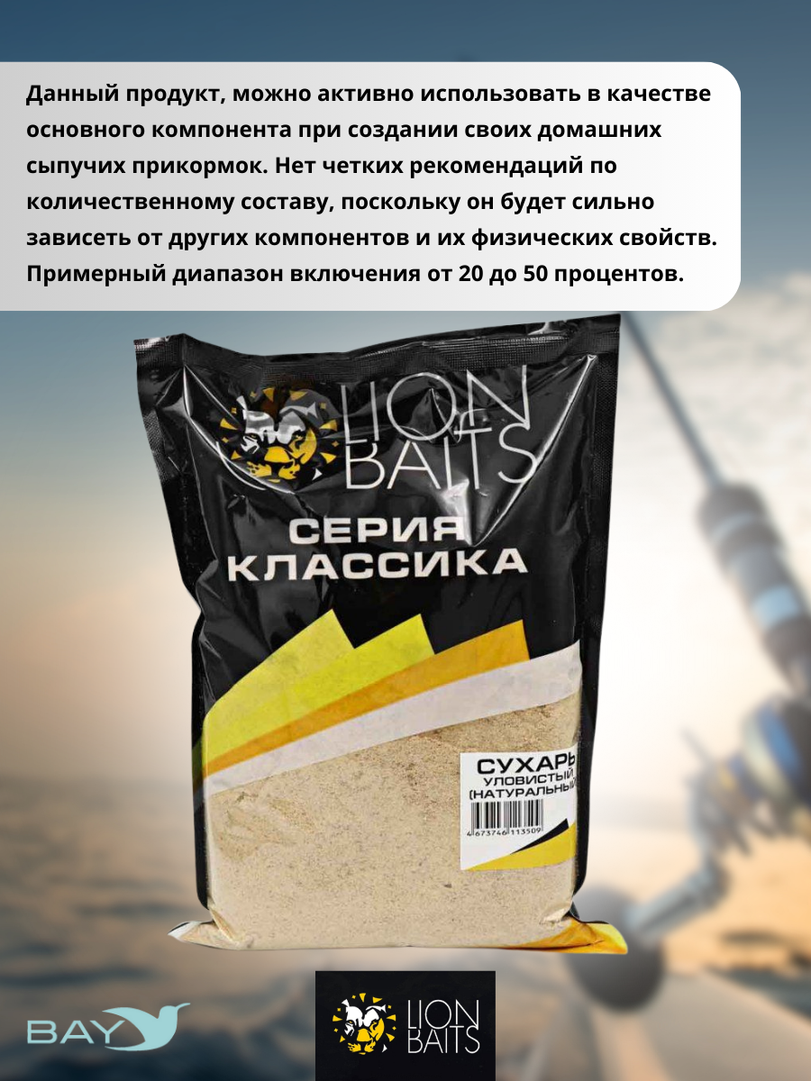 Lion Baits Сухарь уловистый не ароматизированный "Натуральный" 1кг