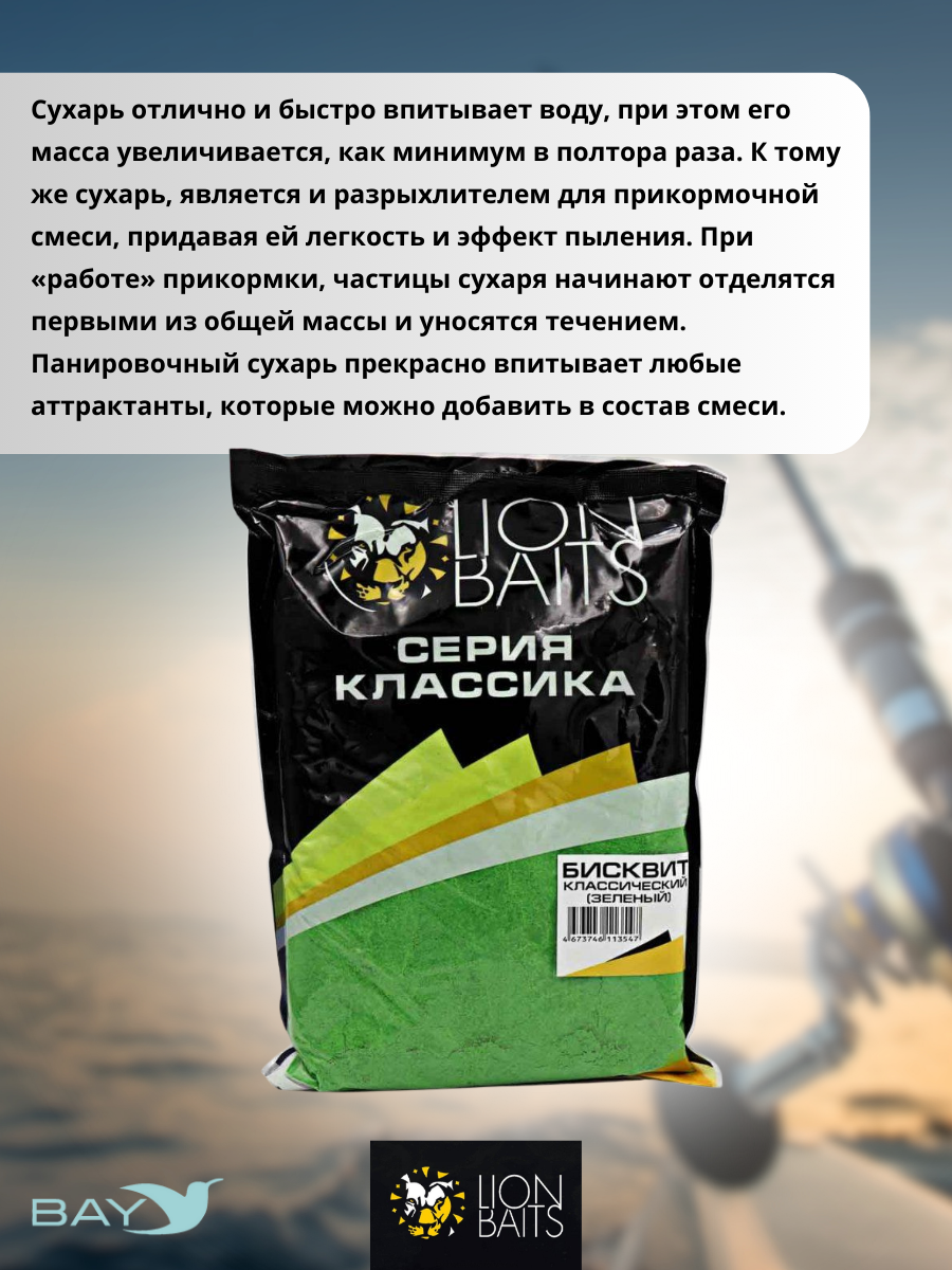 Lion Baits Сухарь уловистый не ароматизированный "Зеленый" 1кг