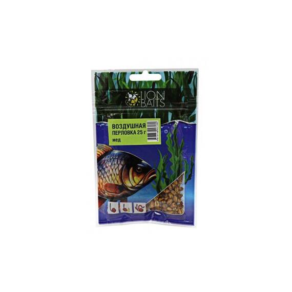 Воздушная перловка – это натуральная насадка для рыболовной ловли, которая прошла процесс вулканизации, и в результате этого термического процесса, зерна перловки приобрели вспененную структуру, увеличились в объеме порядка в 2-2,5 раза. Зерна перловки имеют мягкую структуру, легко нанизываются на крючок, ароматизированы и подкрашены, что создает дополнительное привлечение для рыбы на фоне кормового пятна в местах ловли. Воздушная насадка устойчива на крючке, выдерживает силовые забросы, атаки мелкой рыбы и сильное течение воды.