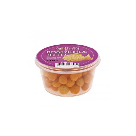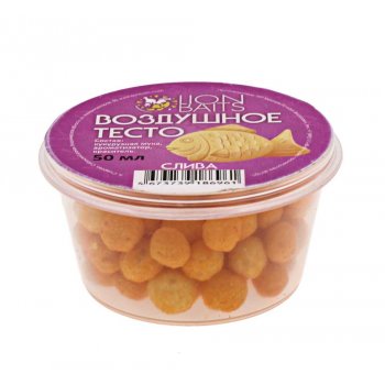 Воздушное тесто – это плавающая насадка в виде шариков из кукурузного теста правильной формы, размером 5-7 мм с пористой и мягкой структурой. Плавающая насадка легко нанизывается на крючок и длительное время (2-6 часов) удерживается на нем, соблазняя на поклевку карасей, карпов, лещей, язей и других рыб.