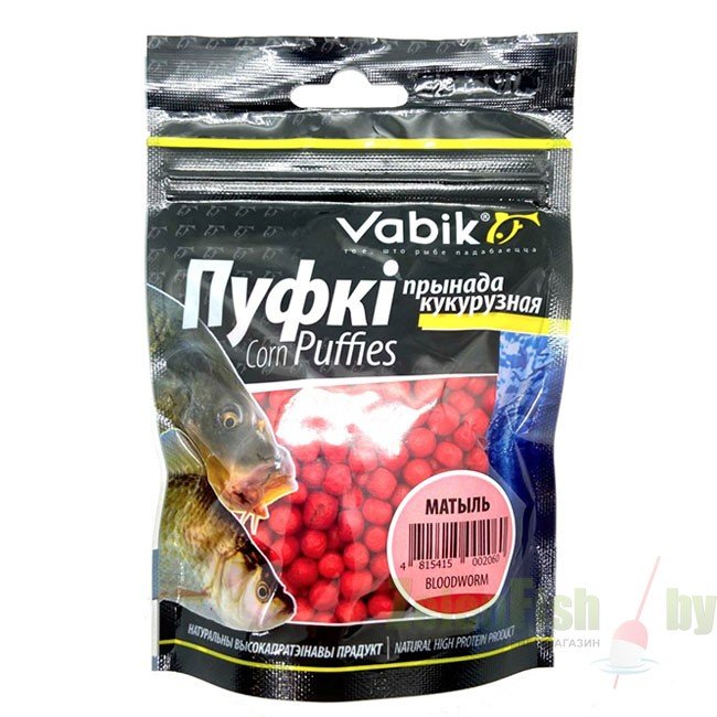 Приманка Corn Puffies от Vabik способна соблазнить на поклёвку как озёрных карасей и карпов, так и речных лещей, язей, чехонь и многих других рыб семейства карповых.