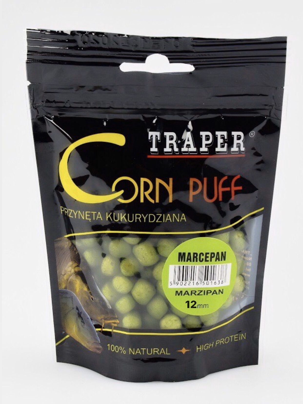 Corn puff - превосходная насадка, работающая по принципу шариков пенопласта. Содержит ароматизаторы, привлекающие рыбу. Может использоваться для ловли карпа, карася, голавля, язя, амура и другой рыбы. После попадания в воду размокает спустя 15 минут, поэтому подходит только для активной ловли (с частыми перезабросами кормушки). Вулканизированная кукуруза расфасована в удобные пакетики на защёлке. Разработана технология, позволяющая изготавливать вулканизированную кукурузу разных диаметров: 4 мм, 8 мм и 12 мм.