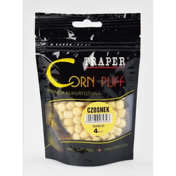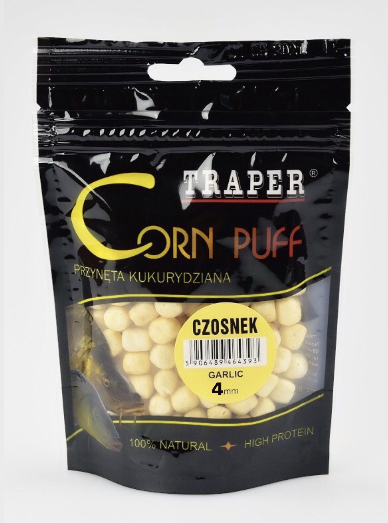 Corn puff - превосходная насадка, работающая по принципу шариков пенопласта. Содержит ароматизаторы, привлекающие рыбу. Может использоваться для ловли карпа, карася, голавля, язя, амура и другой рыбы. После попадания в воду размокает спустя 15 минут, поэтому подходит только для активной ловли (с частыми перезабросами кормушки). Вулканизированная кукуруза расфасована в удобные пакетики на защёлке. Разработана технология, позволяющая изготавливать вулканизированную кукурузу разных диаметров: 4 мм, 8 мм и 12 мм.