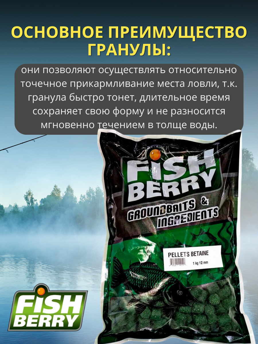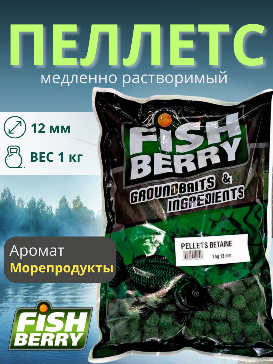 FishBerry Пеллетс карповый (бетаин, цв. -зеленый) 12мм - 1 кг