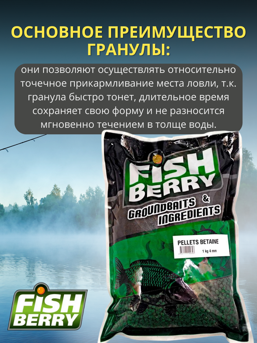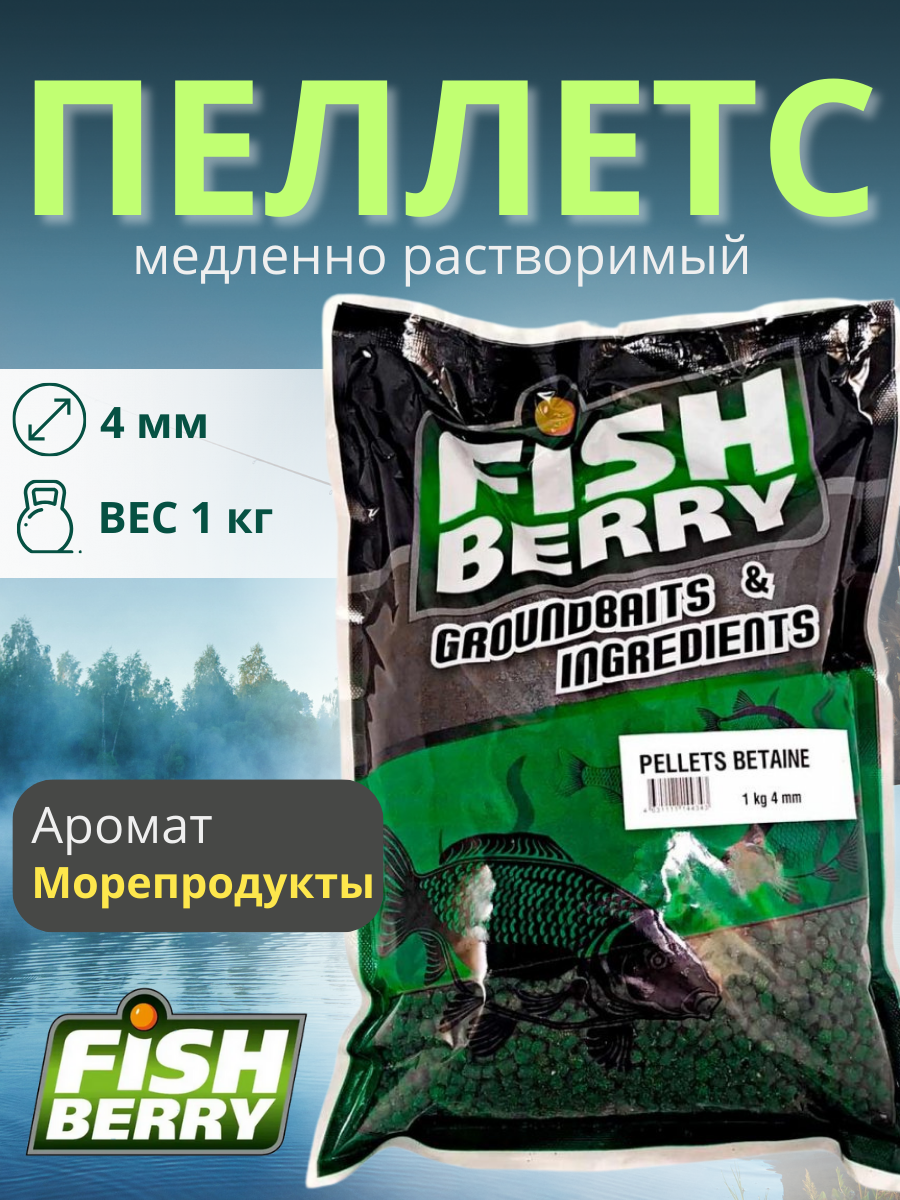 FishBerry Пеллетс карповый (бетаин, цв. -зеленый) 4мм - 1 кг