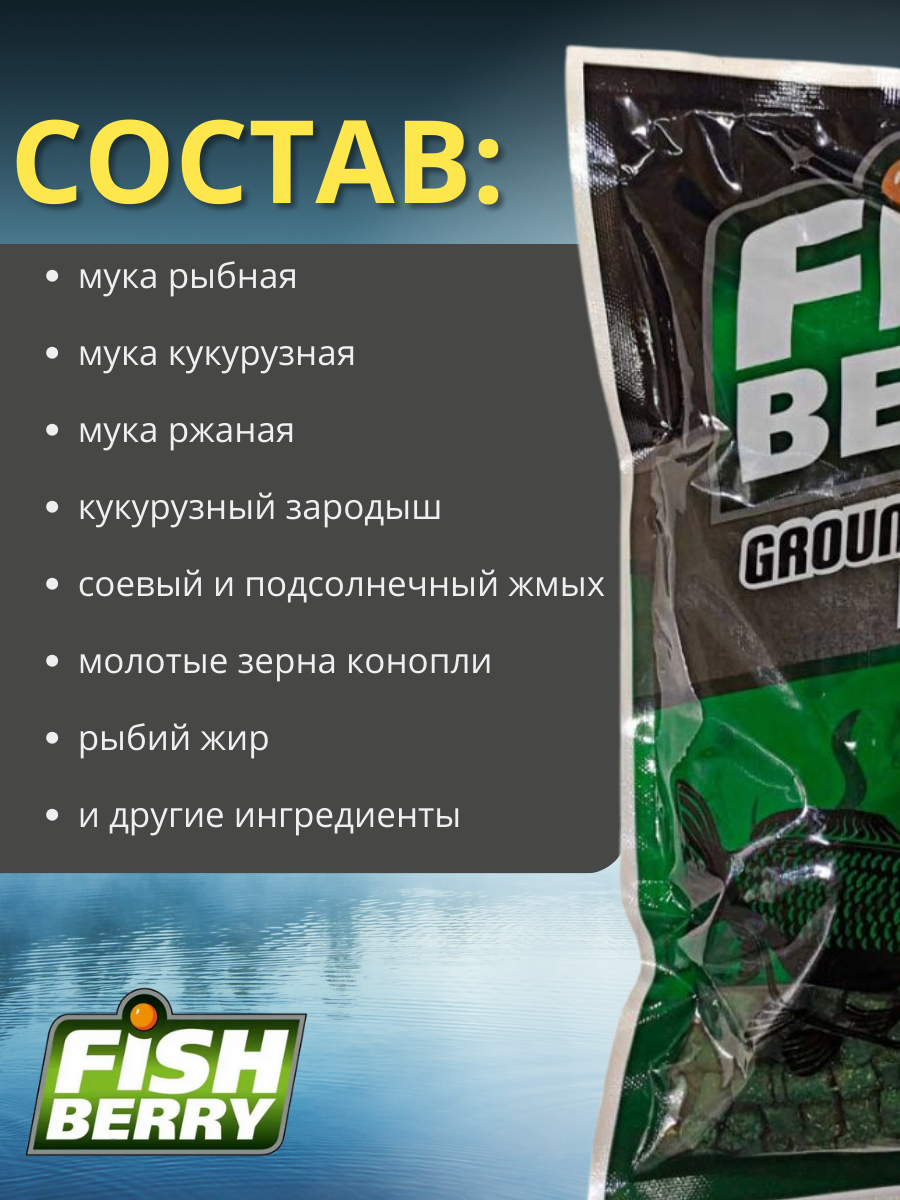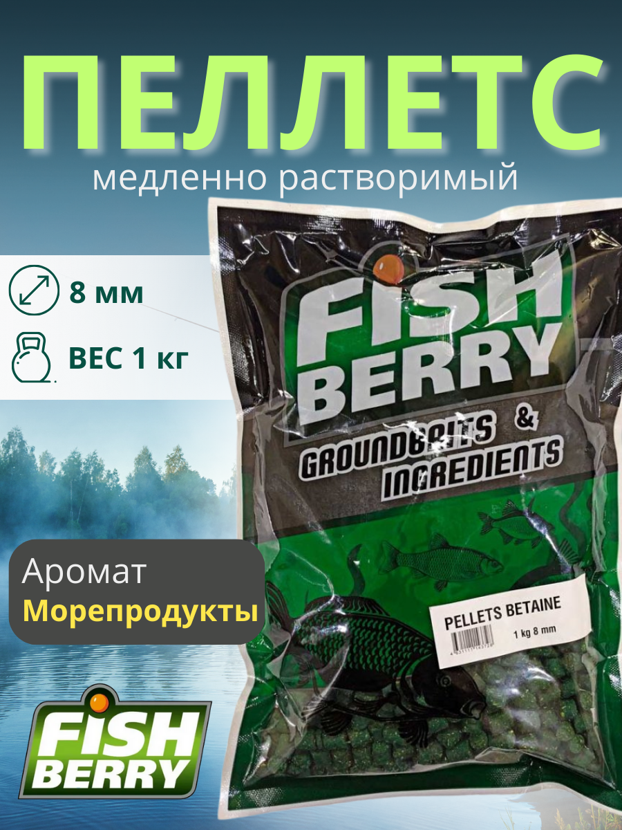FishBerry Пеллетс карповый (бетаин, цв. -зеленый) 8мм - 1 кг