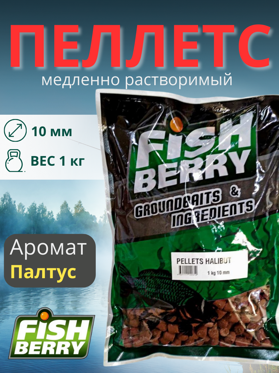 FishBerry Пеллетс карповый (палтус, цв. -бордовый) 10мм - 1 кг