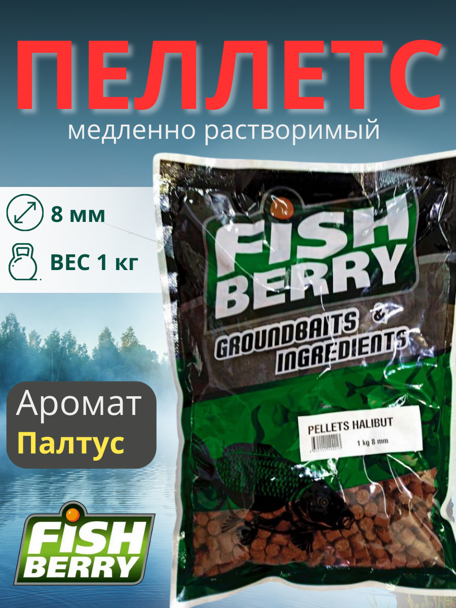 FishBerry Пеллетс карповый (палтус, цв. -бордовый) 8мм - 1 кг