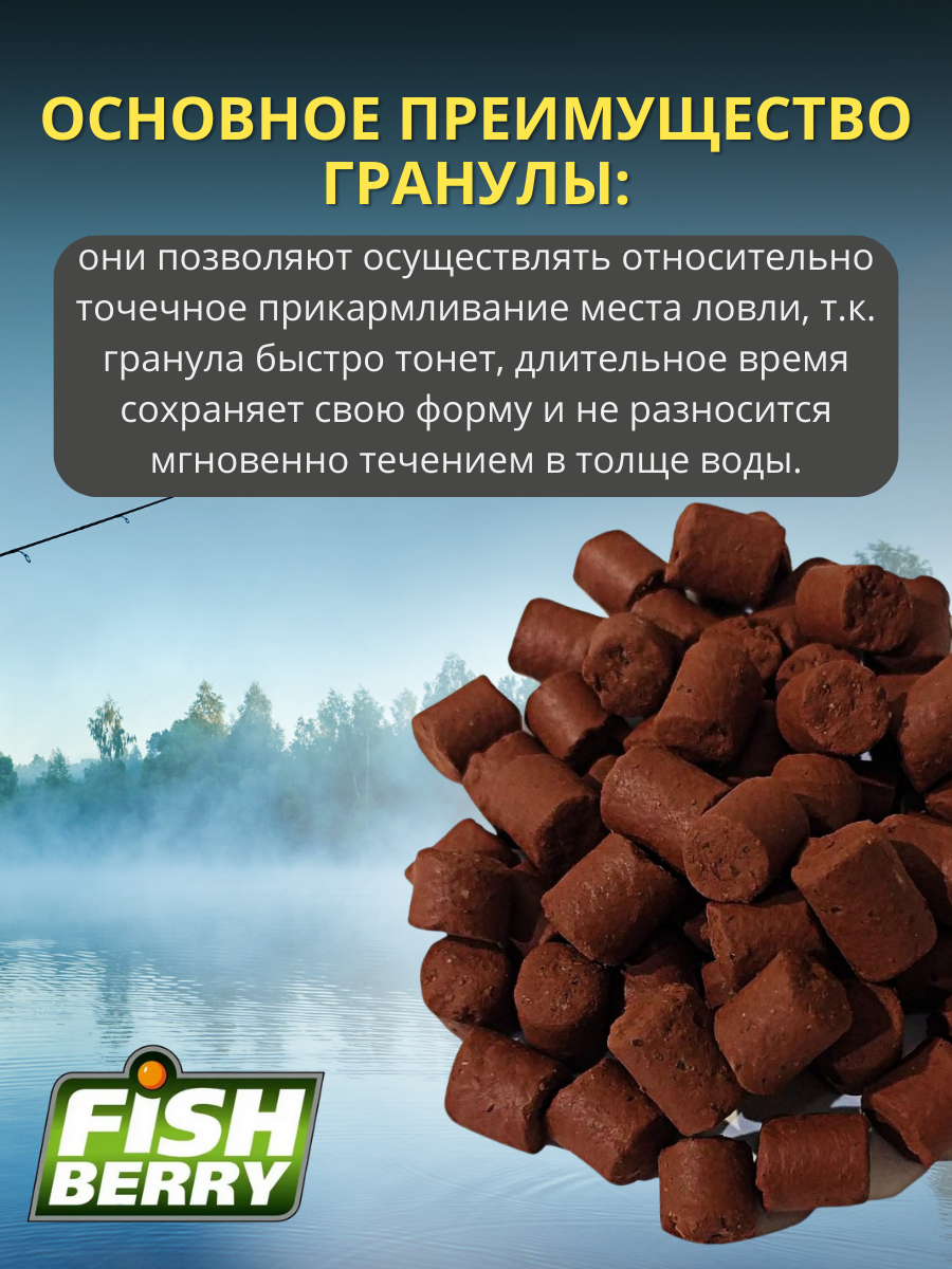 Пеллетс может использоваться и в качестве самостоятельной прикормки, создавая привлечение рыбы за счет более медленного распада гранулы.