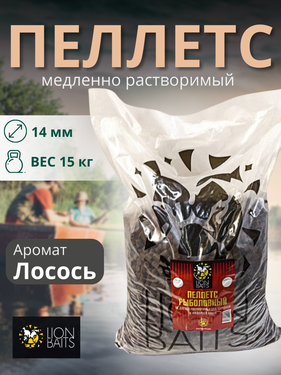 Lion Baits Пеллетс карповый (лосось, цв. -темный) 14мм - 15 кг