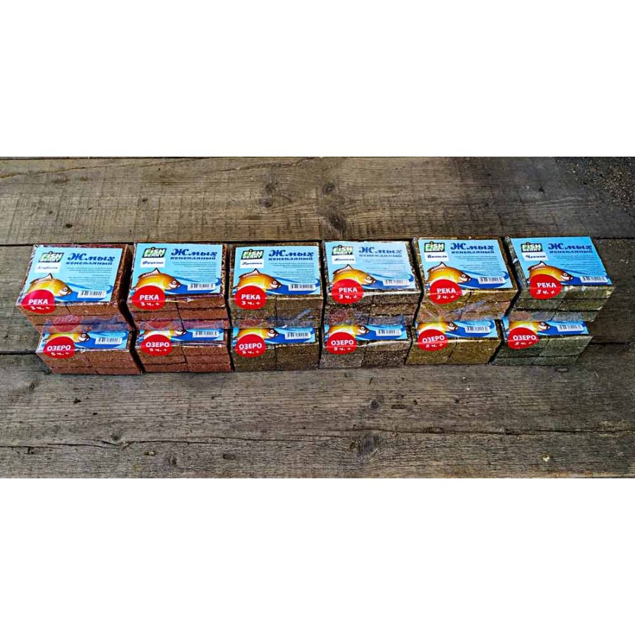 Жмых предназначен для ловли рыбы семейства карповых. Макуха изготовлена в виде прессованных брусочков, состоящих из злаковых и масличных культур. В каждом брусочке имеются отверстия для крючков. Время растворения до ½ размера брусочка в стоячем водоеме примерно 5 часов, в зависимости от воздействия внешних факторов (температура воды, наличие мелкой рыбы и пр.).