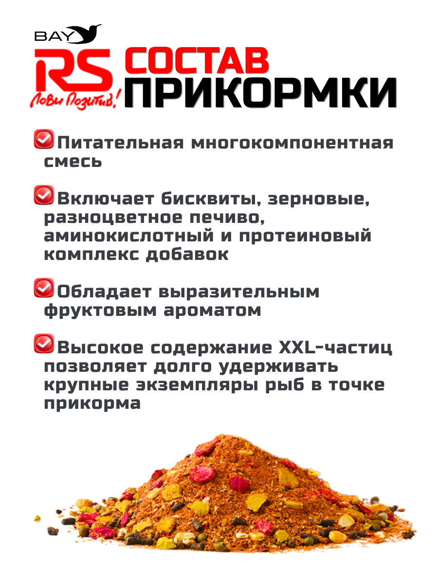 Крупный Лещ спорт RS – уникальная прикормка, разработанная для быстрого привлечения и эффективного удержания в точке ловли крупных экземпляров леща. Многокомпонентный состав, включает крупномолотые бисквиты, молотую коноплю, большое количество желтого печива, а также богатый аминокислотный и протеиновый комплекс добавок. Яркий желтый цвет выделяет прикормку на дне, отпугивая мелочь. Мощный сладкий аромат от известного бельгийского завода прекрасно дополняет формулу ловли крупного леща.