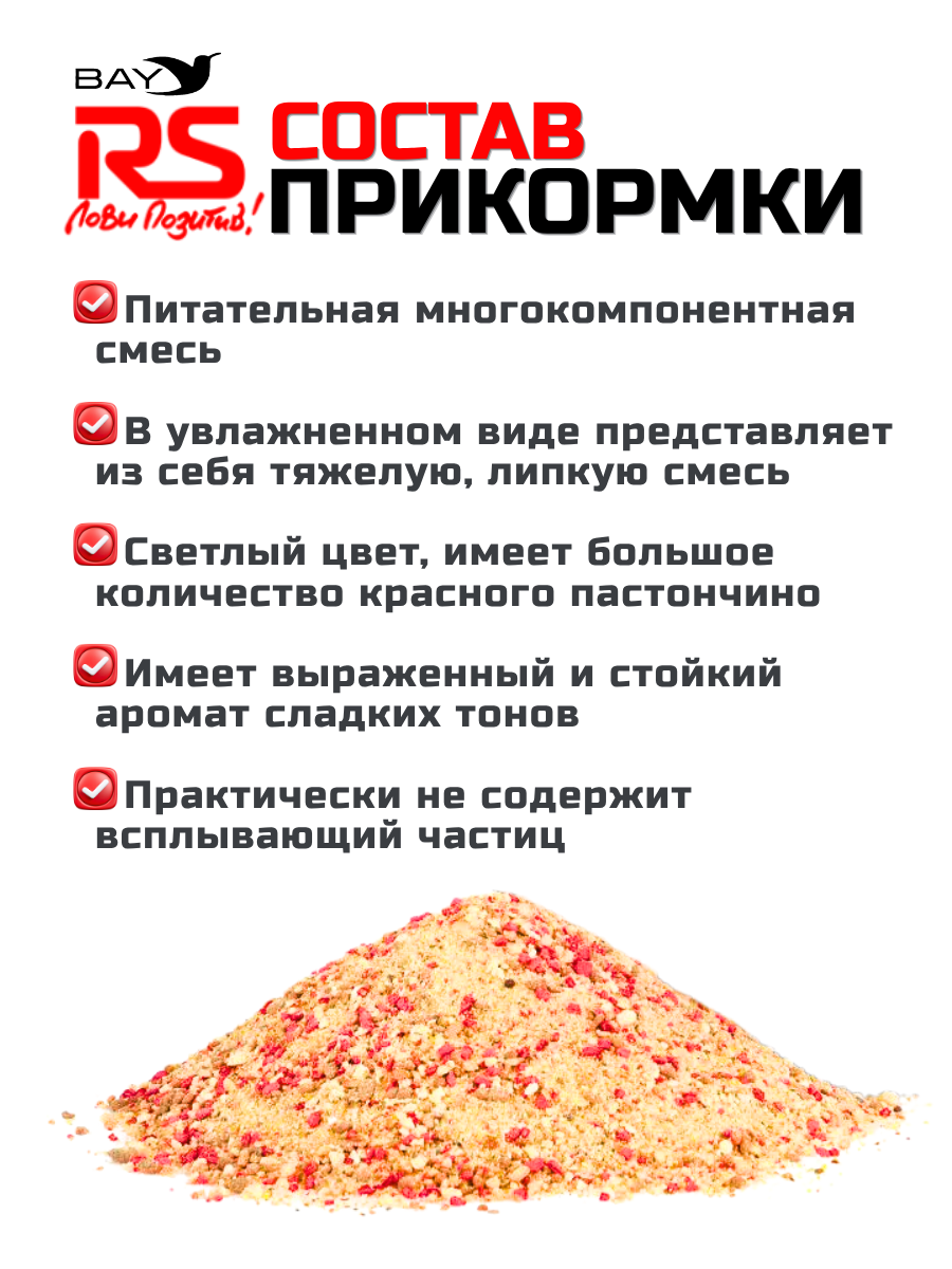 RS Спорт Река Лещ – инертная прикормка, созданная специально для ловли леща на течении и в глубоких местах водохранилищ и озер. В увлажненном виде представляет из себя тяжелую, липкую смесь. Хорошо формируется в прикормочные шары. Практически не содержит всплывающий частиц, работает строго в придонном слое.