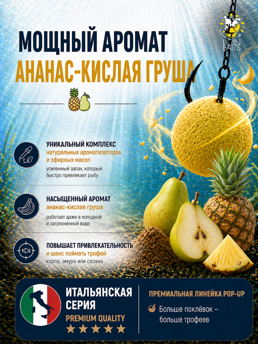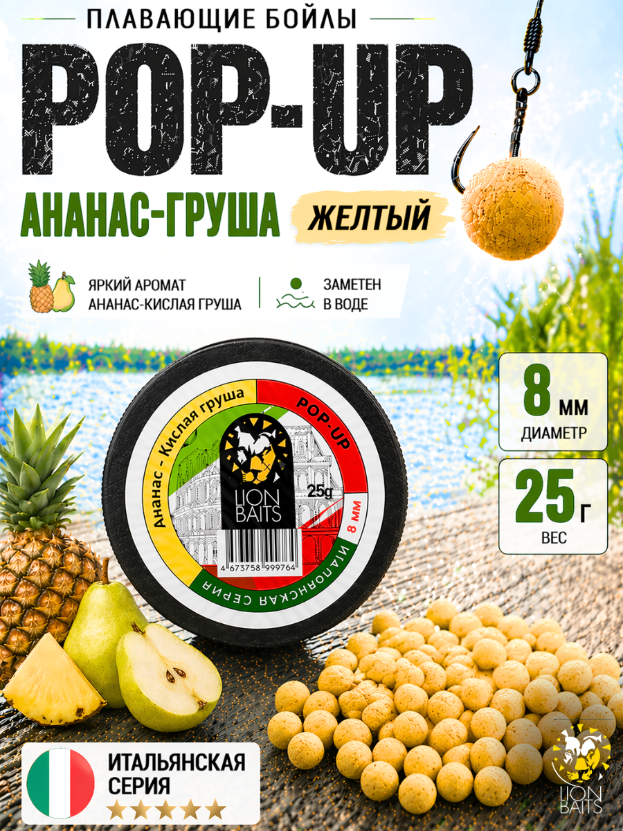 Lion Baits Бойлы плавающие Pop Up "Ананас-Кислая груша" Итальянская серия 8 мм