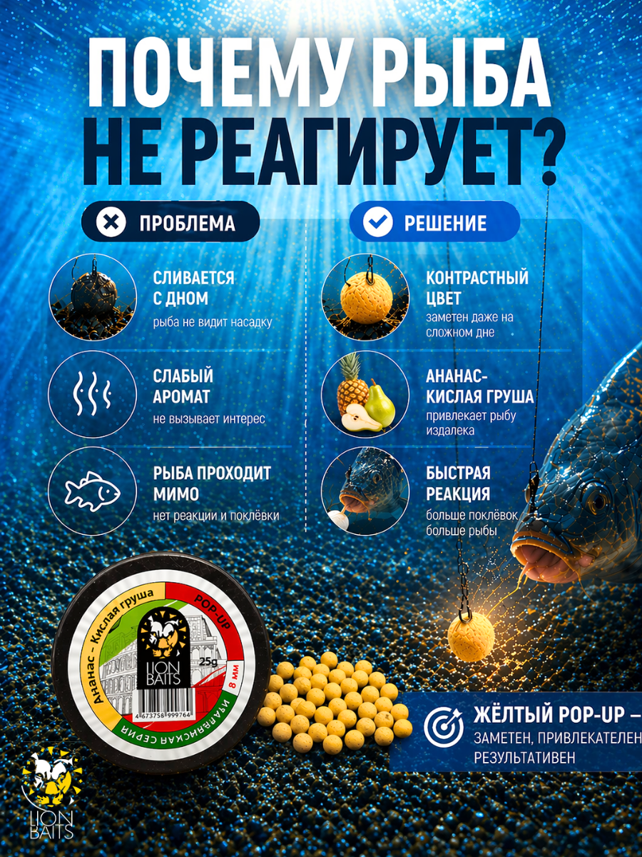 Эта приманка стала настоящим открытием! Были проделаны продолжительные опыты для нахождения нужных пропорций с последующим созданием очень интересной и чрезвычайно эффективной комбинации. Запах сочного спелого Ананаса оттеняет аромат Кислинки груши, тем самым в разы увеличивая эффективность привычного всем запаха Ананаса.