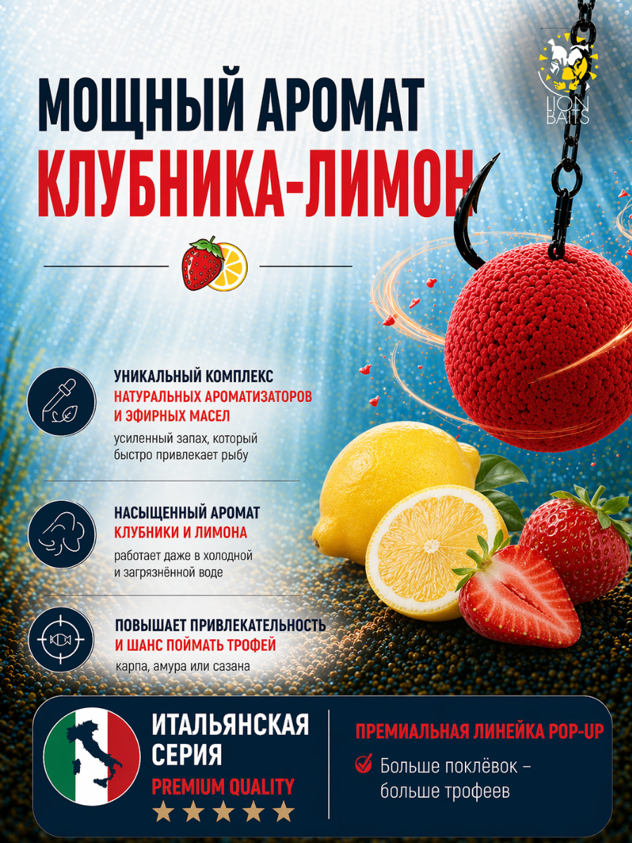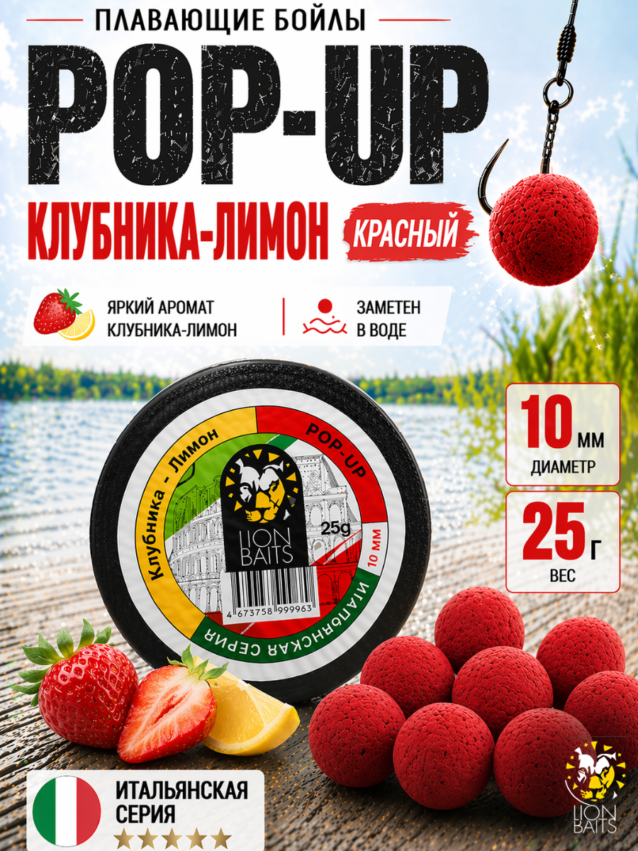 Lion Baits Бойлы плавающие Pop Up "Клубника-Лимон" Итальянская серия 10мм
