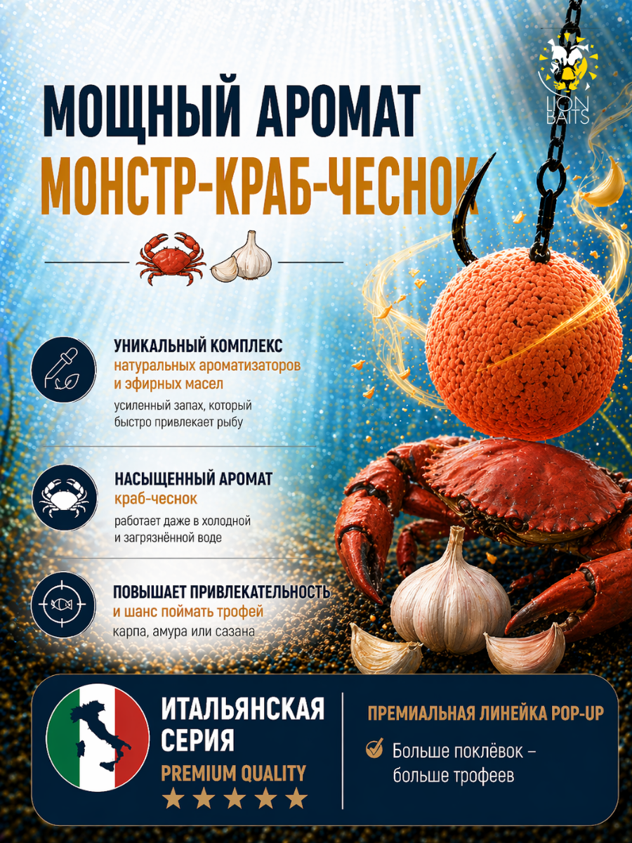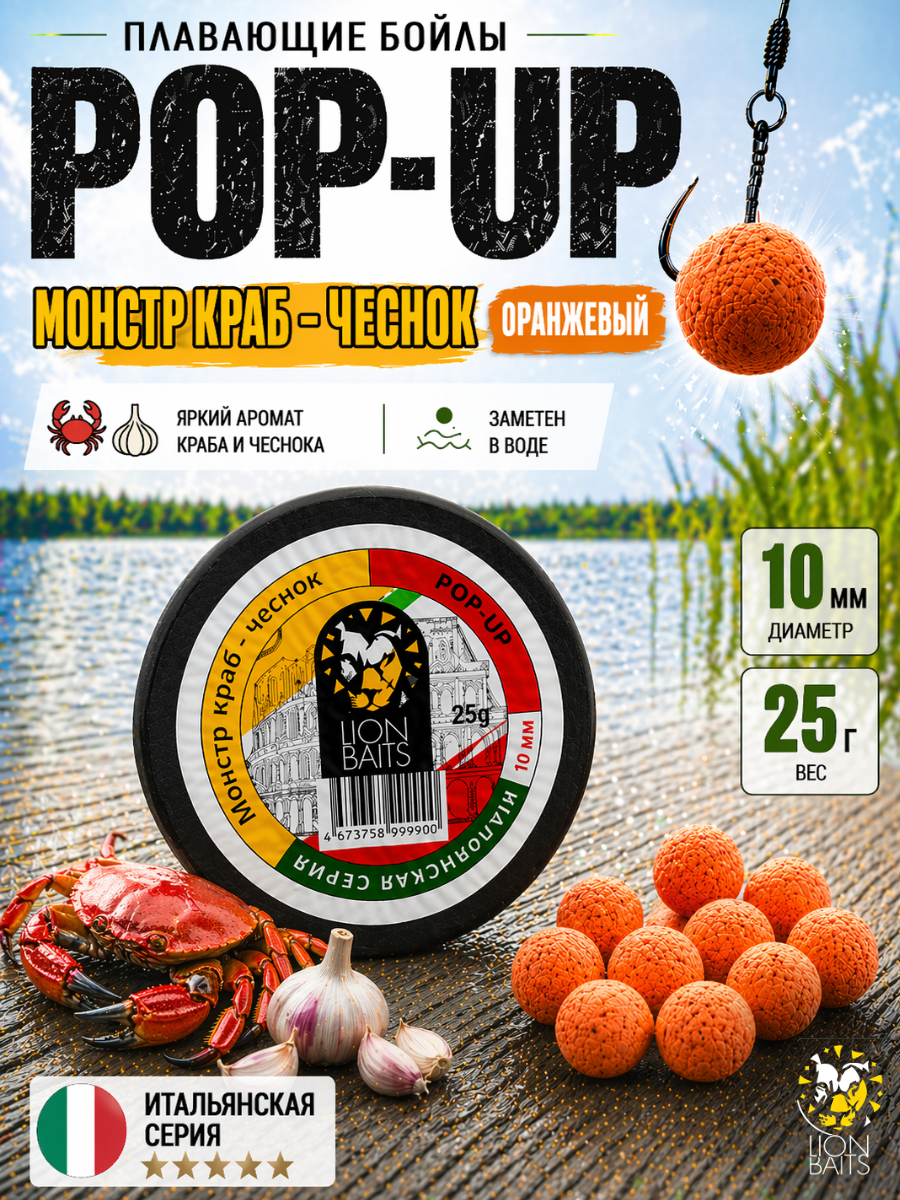 Lion Baits Бойлы плавающие Pop Up "Монстр краб-Чеснок" Итальянская серия 10мм