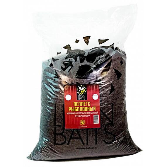 Пеллетс рыболовный медленно растворимый для карповой и фидерной ловли. Экструдированные гранулы диаметром 2-4-8 мм, предназначены для использования в качестве базового компонента любой прикормочной смеси для ловли различных видов рыб. В данном виде пеллетса, используется добавка в виде ароматики "лосось". Пеллетс может использоваться и в качестве самостоятельной прикормки, создавая привлечение рыбы за счет более медленного распада гранулы. Состав пеллетса, как и в сыпучих прикормках, содержит целый ряд компонентов, которые способны привлечь рыбу в точку лова, такие как: мука рыбная, мука кукурузная, мука ржаная, кукурузный зародыш, соевый и подсолнечный жмых, молотые зерна конопли, рыбий жир и другие ингредиенты. Основное преимущество гранулы состоит в том, что они позволяют осуществлять относительно точечное прикармливание места ловли, т.к. гранула быстро тонет, длительное время сохраняет свою форму и не разносится мгновенно течением в толще воды. Пеллетс широко и активно используется в карповой ловле, поскольку он является отличным помощником и дополнением к бойлам, неким промежуточным звеном между сыпучей прикормкой с ее мгновенным действием и бойлами, которые включаются в работу, после более длительного нахождения в воде.