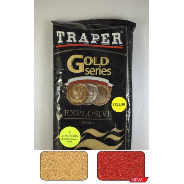 Traper Gold Series «Explosive» — рассыпчатая «взрывная»смесь очень мелкого помола, создающая в воде облако мути. Содержит в своём составе измельчённые личинки тутового шелкопряда. Данная прикормка замечательно собирает уклейку и другую рыбу, поднимающуюся в полводы. Может использоваться в чистом виде, а также как добавка к прикормке, когда ловля ведётся на медленно падающую наживку. Зимой великолепно собирает плотву и подлещика.