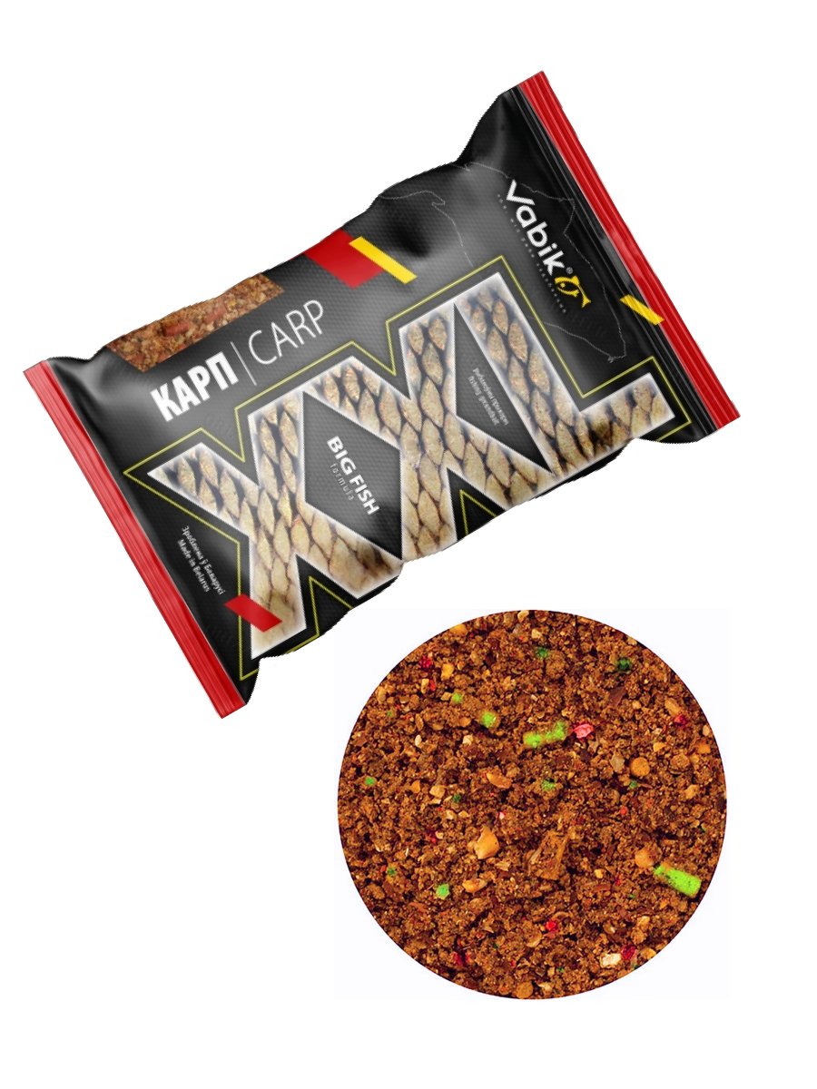 Высокопитательная прикормка красновато-бежевого цвета, крупного помола. Изобилует всевозможными крупными частицами. такими как кусочки бисквита, кукуруза, печиво, пеллест и др. Обладает характерным сладким фруктовым запахом, от которого карп без ума. Предназначена для ловли трофейной рыбы.