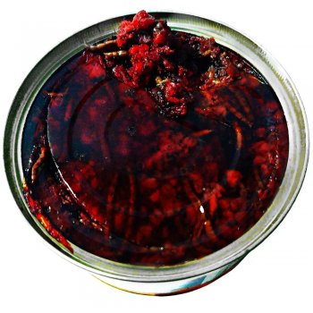 Состав: натуральный уральский мотыль (консервированный, без применения консервантов и химических добавок). При варке некоторая часть мотыля приобретает более темный окрас, поэтому иногда некоторые личинки могут отличаться друг от друга и от цвета наполнителя. Наполнитель имеет натуральную белковую основу.