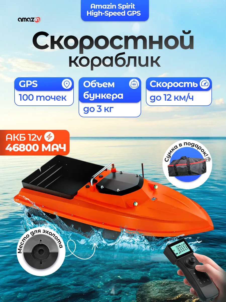 Прикормочный кораблик Amazin Spirit high-speed GPS с эхолотом AMAZIN FF777-PRO-CWLS: