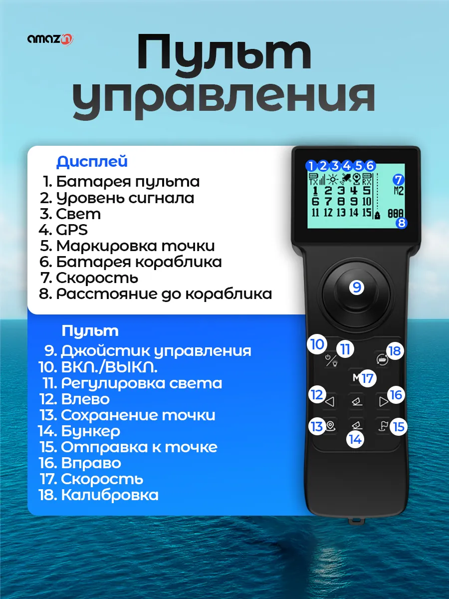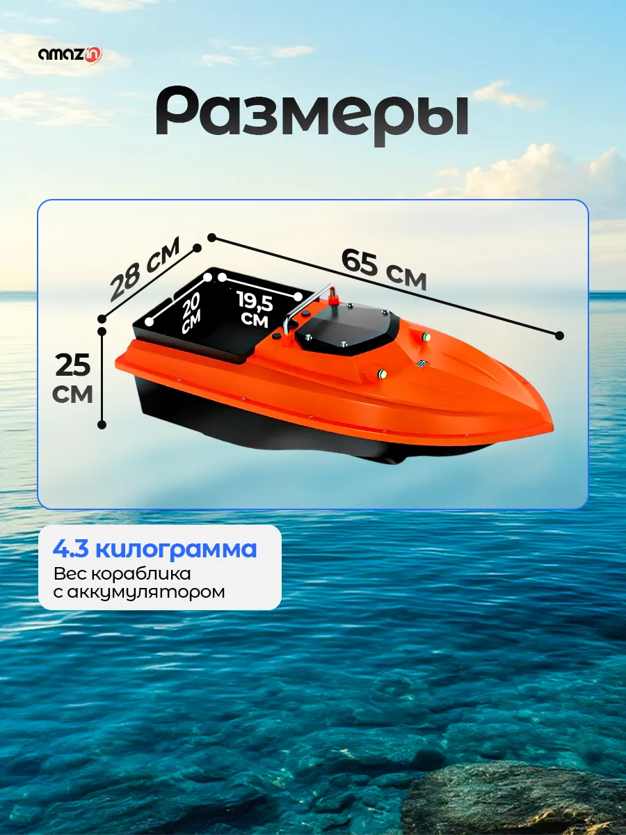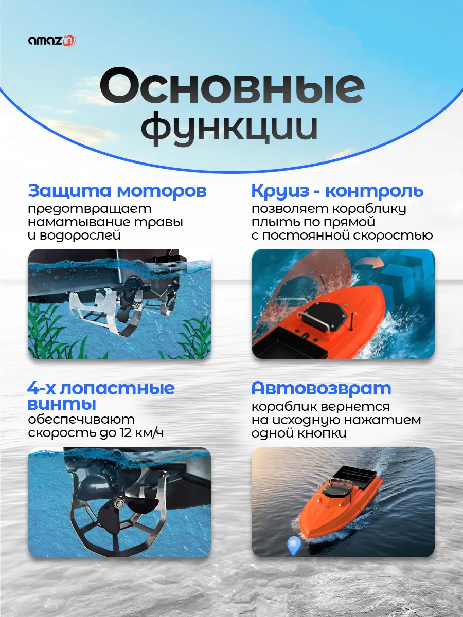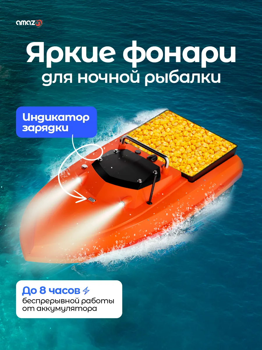 Безопасность – ключевая особенность этой модели: при низком заряде батареи или потере сигнала срабатывает функция автоматического возврата, а яркие LED-фонари (2 передних и 2 задних) обеспечивают отличную видимость в любое время суток. Максимальная скорость достигает 12 км/ч, а время работы – до 8 часов. В комплексе с эхолотом AMAZIN FF777-PRO-CWLS этот прикормочный кораблик становится универсальным инструментом для рыболовов, позволяя не только доставлять прикорм, но и проводить полноценное исследование водоема. Надежный, технологичный и удобный – этот прикормочный кораблик создан для тех, кто ценит качество и комфорт.