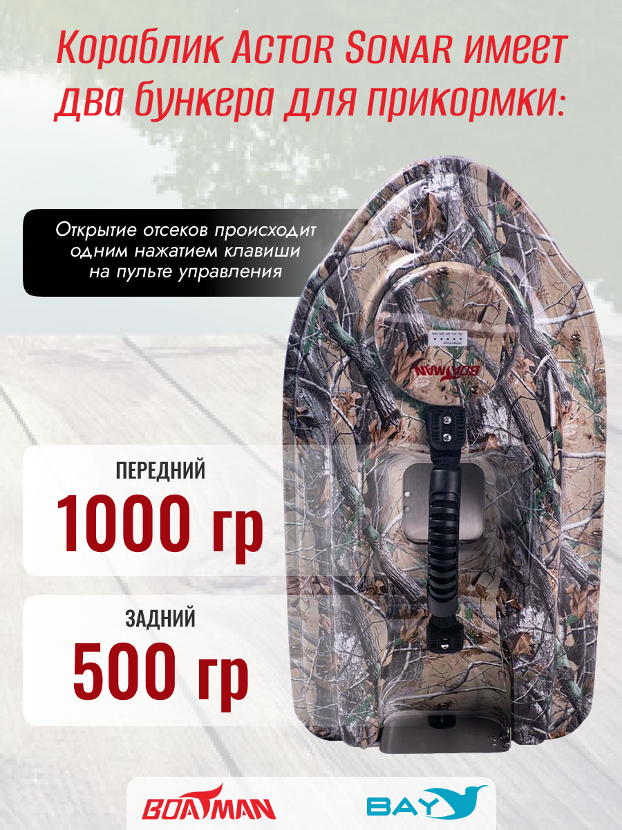 Кораблик Actor Basic - базовая версия линейки корабликов BOATMAN Actor для любителей рыбалки, которые ищут компактный и мощный прикормочный корабль по разумной цене.