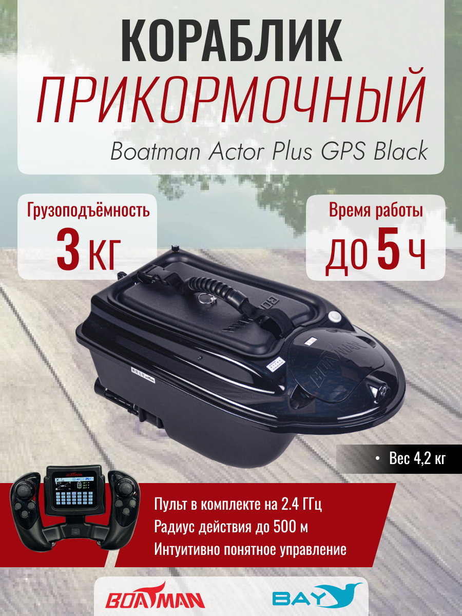 Насладитесь комфортом от рыбалки с прикормочным корабликом Boatman Actor Plus. Центральный контейнер внушительной емкости, повышенная грузоподъемность и механизм сброса оснастки позволяют закармливать точки ловли и завозить снасть с непривычной легкостью и точностью.