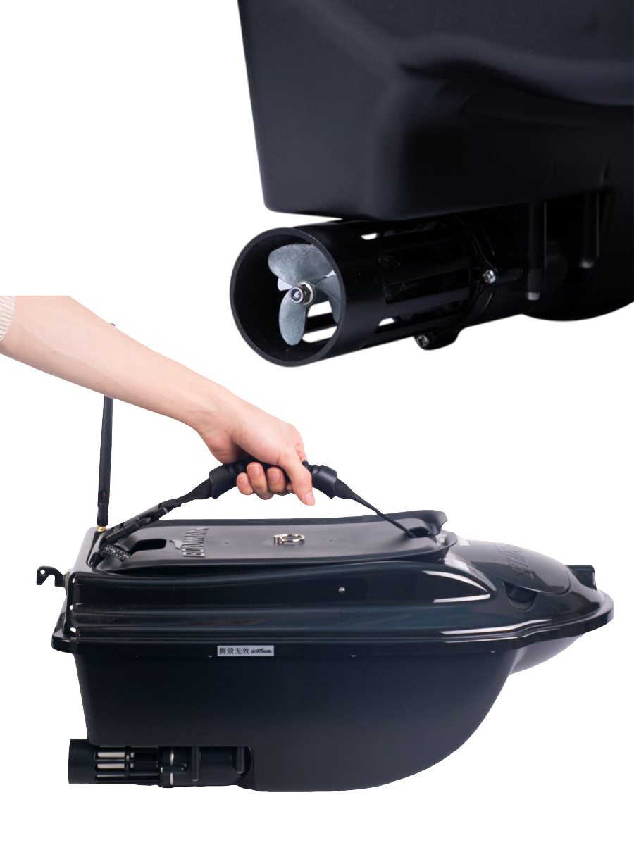С помощью надежно закрепленной к корпусу ручки вы без труда сможете перенести прикормочный кораблик с места на место, опустить в воду и поднять на берег