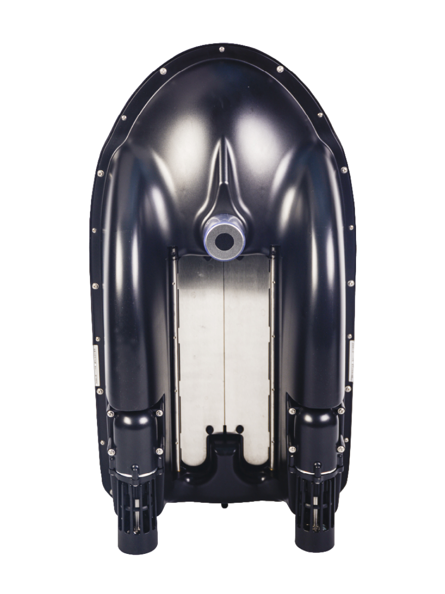 Два электродвигателя обеспечивают скорость вращения лопастей 7000 об/мин и позволяют кораблику двигаться со скоростью до 70 м/мин, сохраняя при этом высокую устойчивость и позволяя эхолоту построить максимально точный рельеф и обработать всю отсканированную информацию