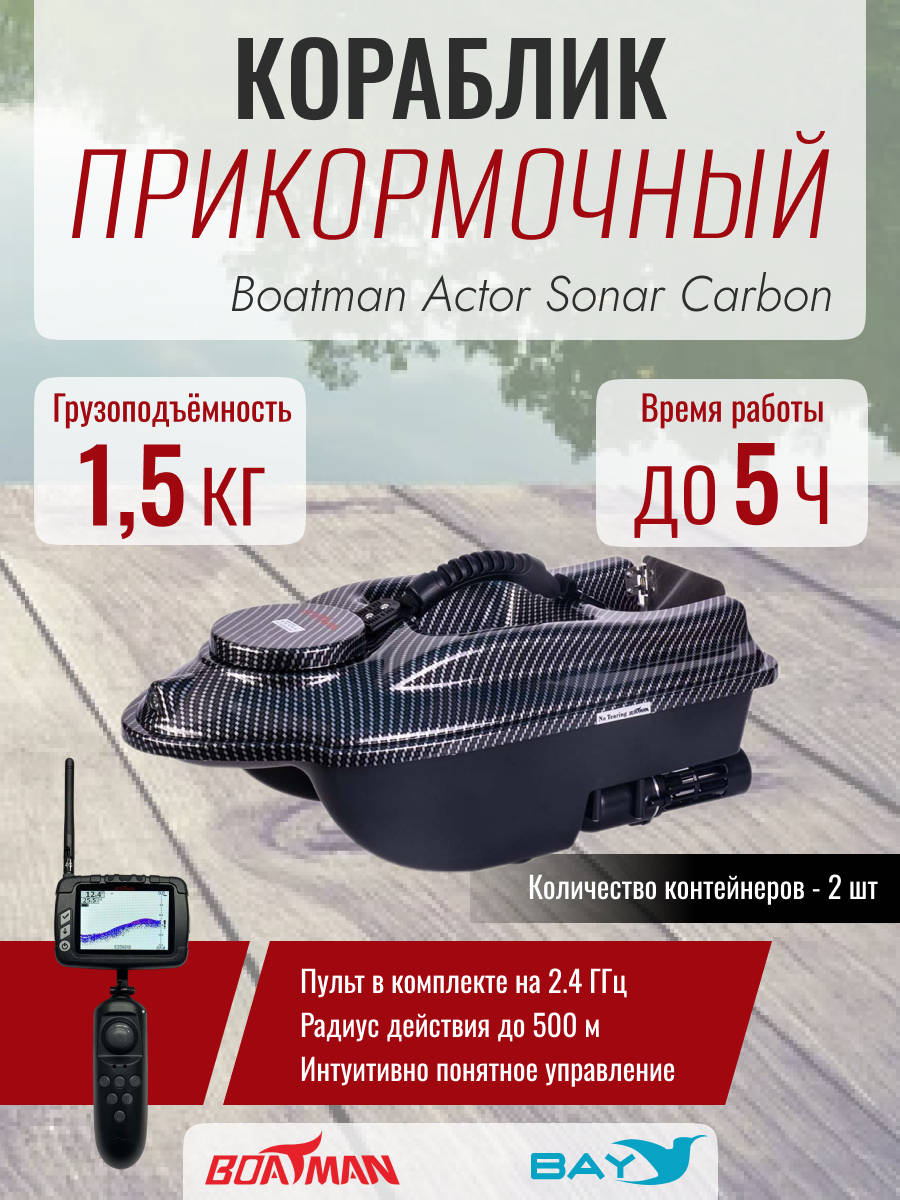 Прикормочный кораблик Boatman Actor Sonar Carbon
