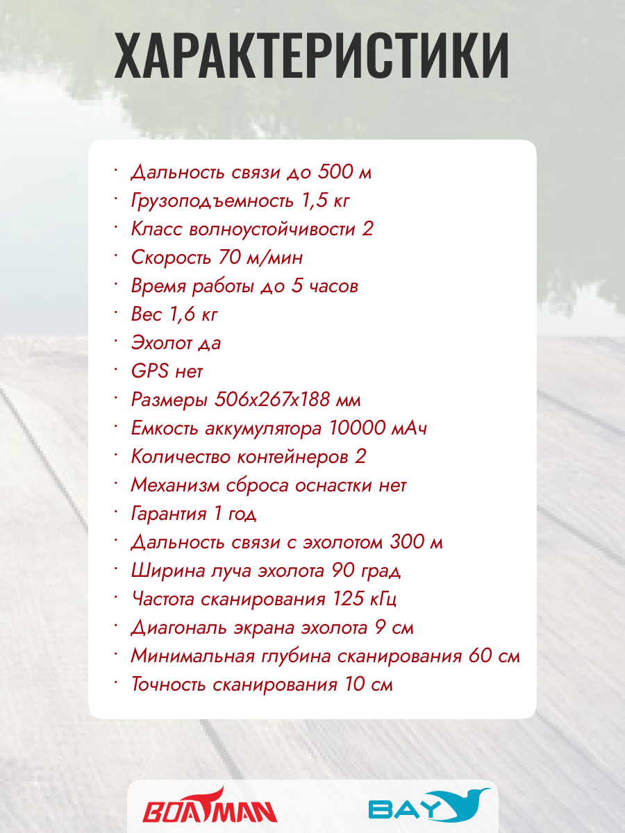 - Дальность связи с эхолотом 300 м