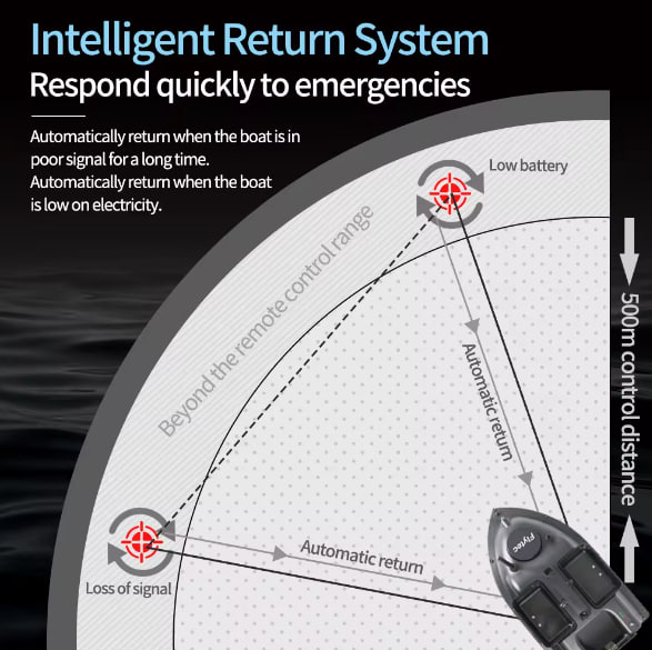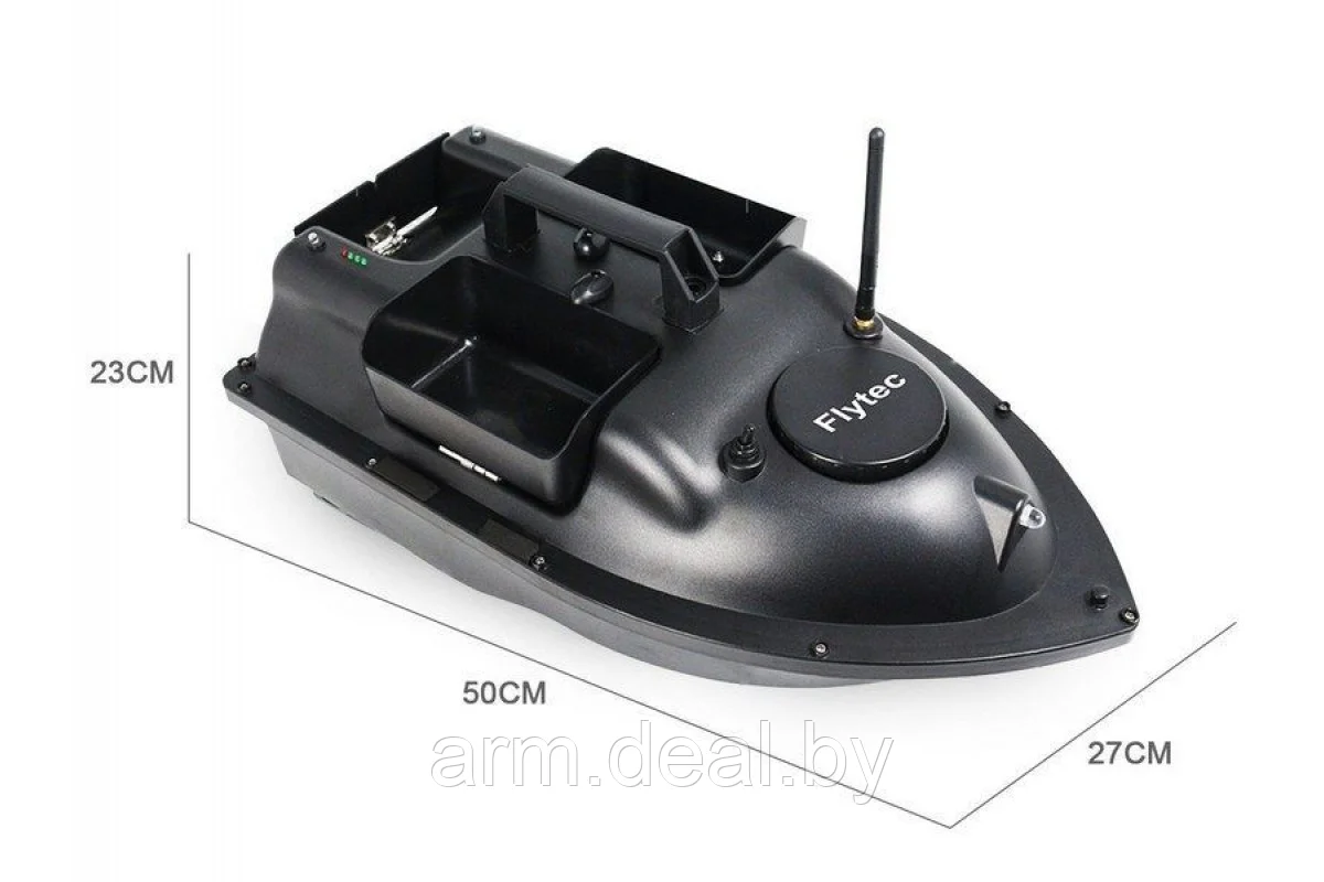 Катер оснащен мощным аккумулятором 5200 mAh, что позволяет ему быть на ходу до 4-х часов, либо проплыть на расстояние до 4-х км. Аккумулятор размещен в передней части корпуса корабля и имеет быстрый практичный доступ для отключения или замены. На корме судна есть светодиодная индикация заряда батареи. Дальность радиосвязи корабля составляет 500 м, благодаря этому вы сможете доставить корм в любое место в водоеме! Скорость передвижения - до 6 км/ч. Мощные электромоторы и трехлопостные винты делают катер очень маневренным, вследсвие чего он можетразвернуться в радиусе 1 м.