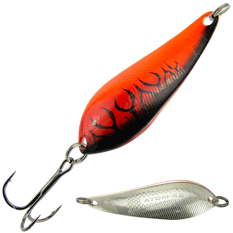 Рисунок игры блесны Атом, по-своему красив и в тоже время эффективен для большинства хищников. Блесна стабильна в игре, и эффектно колеблется в зоне своей оси, не выходя далеко за ее пределы. Именно такая реалистичная игра этой уловистой блесны, напоминает поведение живых объектов, что провоцирует хищника на хватку.