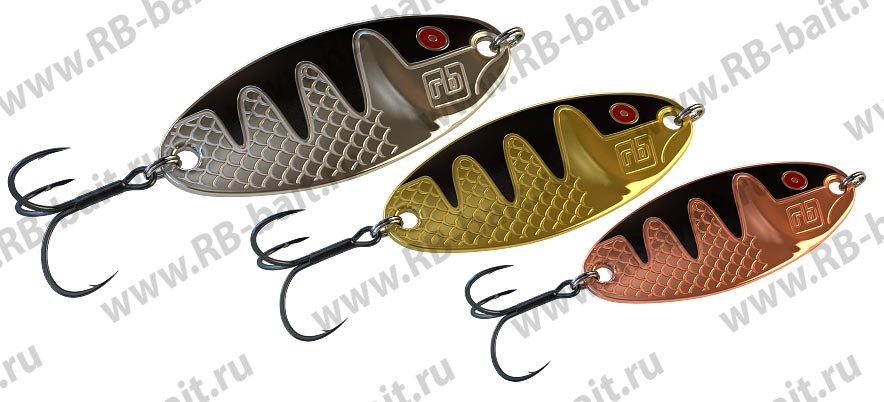 И вот, спустя много десятков лет с момента появления первой модели, Черноспинка обретает новую жизнь в инновационном исполнении компании RB. Технология литья латуни позволила добиться идеальных пропорций и прекрасной игры, а гальваническое покрытие делает приманку долговечной и позволяет ей спустя годы не терять внешнего вида и привлекательности для рыбы, которую не даст упустить высококачественная японская фурнитура, примененная при сборке блесны.