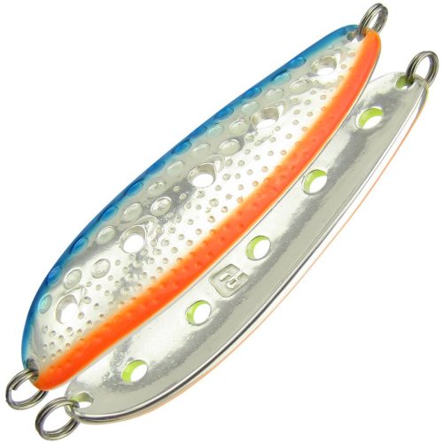 Блесна работает в широком диапазоне скоростей проводки, а также при ловле в отвес, допускает активную анимацию. Как следствие - добычей становятся не только лососи, но и жерех, судак, сом - на юге, озерный голец Таймыра и Кольского полуострова, жерех и щука на больших водохранилищах. Ловля в заброс, троллингом и в отвес - как зимой, так и летом - всегда эта блесна окажется на высоте!