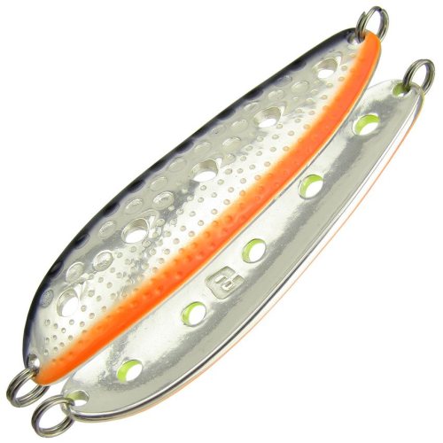 Блесна работает в широком диапазоне скоростей проводки, а также при ловле в отвес, допускает активную анимацию. Как следствие - добычей становятся не только лососи, но и жерех, судак, сом - на юге, озерный голец Таймыра и Кольского полуострова, жерех и щука на больших водохранилищах. Ловля в заброс, троллингом и в отвес - как зимой, так и летом - всегда эта блесна окажется на высоте!
