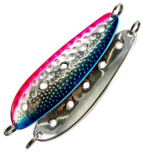 Блесна работает в широком диапазоне скоростей проводки, а также при ловле в отвес, допускает активную анимацию. Как следствие - добычей становятся не только лососи, но и жерех, судак, сом - на юге, озерный голец Таймыра и Кольского полуострова, жерех и щука на больших водохранилищах. Ловля в заброс, троллингом и в отвес - как зимой, так и летом - всегда эта блесна окажется на высоте!