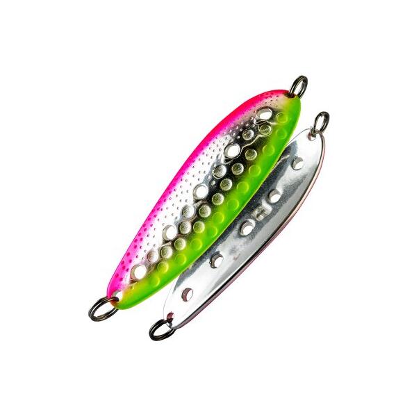 Блесна работает в широком диапазоне скоростей проводки, а также при ловле в отвес, допускает активную анимацию. Как следствие - добычей становятся не только лососи, но и жерех, судак, сом - на юге, озерный голец Таймыра и Кольского полуострова, жерех и щука на больших водохранилищах. Ловля в заброс, троллингом и в отвес - как зимой, так и летом - всегда эта блесна окажется на высоте!
