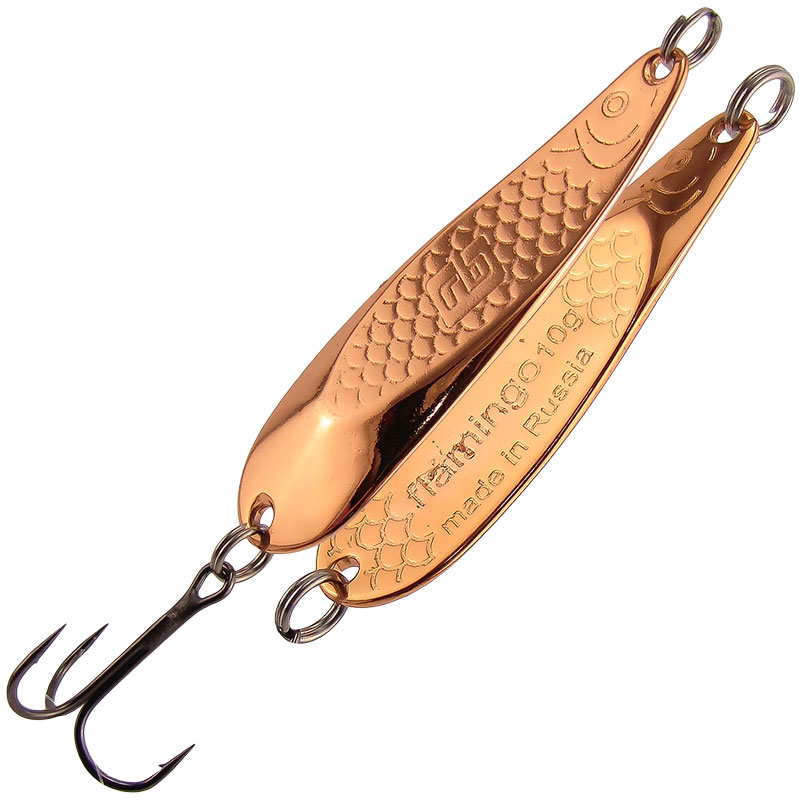 Фламинго имеет несколько вариантов покрытия: медь, латунь, серебро, и комбинацию серебра и золота. Поверхность блесны покрывается водостойким лаком, препятствующим окислению и сохраняющий привлекательный вид блесны.