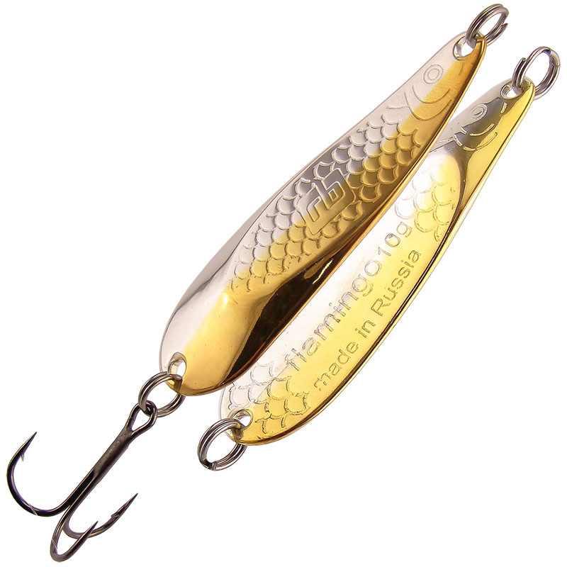 Фламинго имеет несколько вариантов покрытия: медь, латунь, серебро, и комбинацию серебра и золота. Поверхность блесны покрывается водостойким лаком, препятствующим окислению и сохраняющий привлекательный вид блесны.